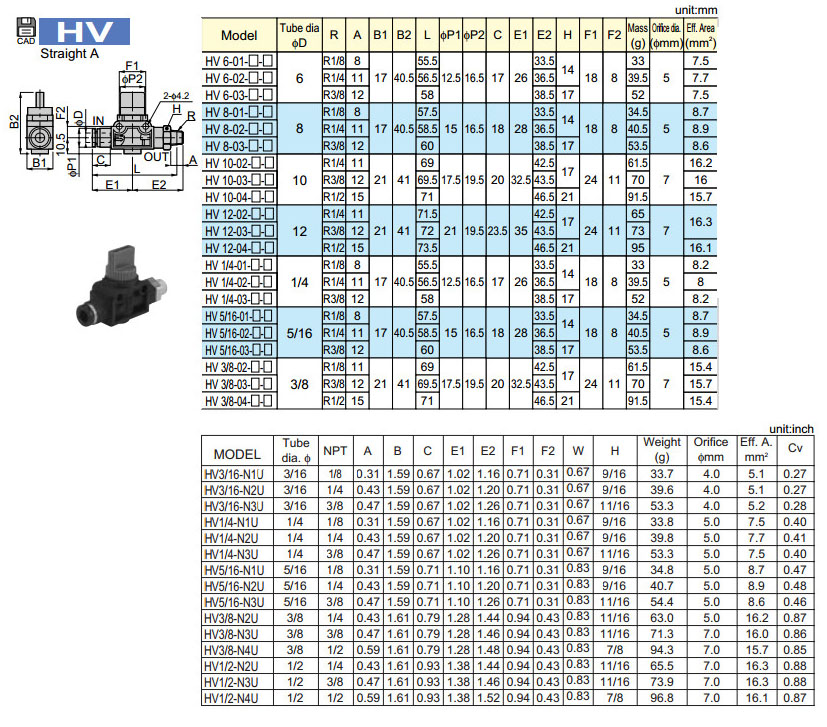 HV6-01-2,HV8-01-2,HV10-02-2,HV12-03-2,HV1/4-02-2,HV3/8-02-2,HV1/2-N4U,HV5/16-N3U,