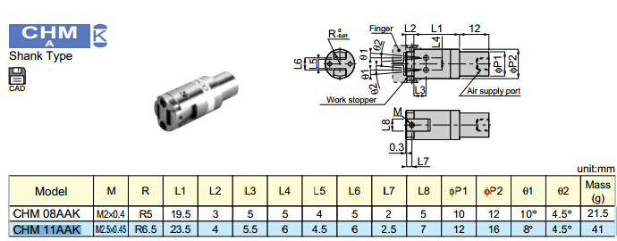 CHM08AAK,CHM11AAK,PISCO截止夹持器