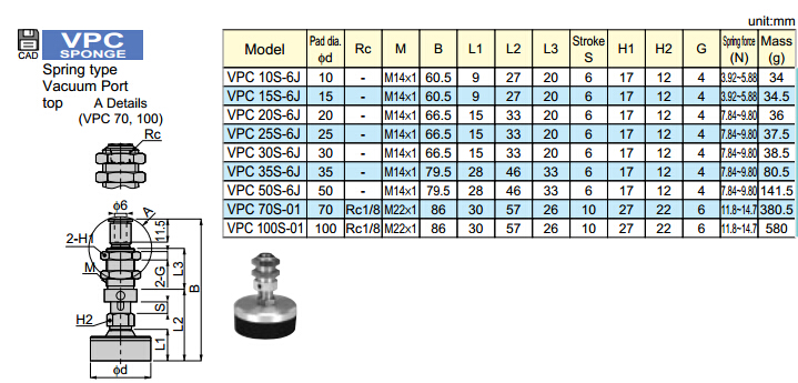 VPC10S-6J,VPC15S-6J,VPC20S-6J,VPC25S-6J,VPC30S-6J,VPC50S-6J,VPC70S-01,VPC100S-01,VPC35S-6J,PISCO真空吸盘