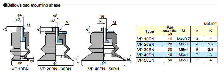 VP10BN,VP20BN,VP30BN,VP40BN,VP50BN,PISCO真空吸盘