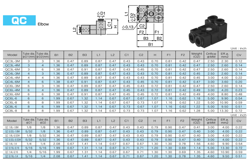 QC3L-3M,QC4L-6M,QC6L-3M,QC1/8L-1/8M,QC5/32L-1/8M,QC1/4L-1/4,QC5/16L-5/16,QC1/4L-5/16