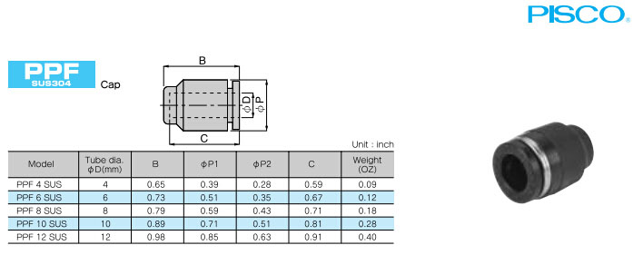 PPF4SUS,PPF6SUS,PPF8SUS,PPF10SUS,PPF12SUS,PISCO快速接头