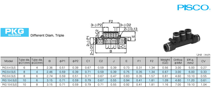 PKG6-4SUS,PKG8-4SUS,PKG8-6SUS,PKG10-6SUS,PKG10-8SUS,PISCO快速接头