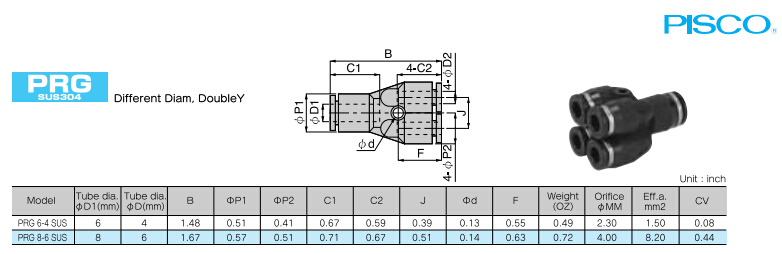 PRG6-4SUS,PRG8-6SUS,PISCO快速接头