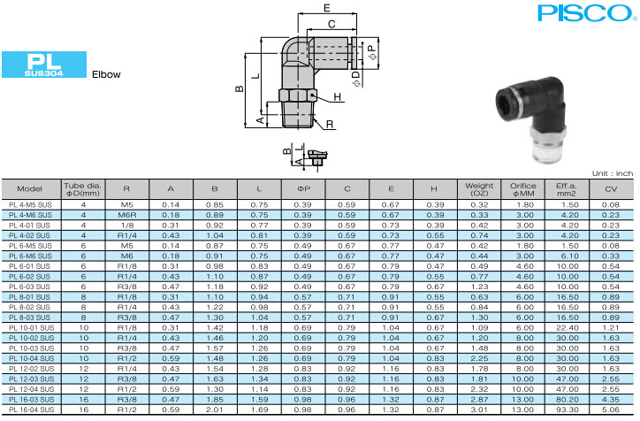 PL4-M5SUS,PL6-M5SUS,PL8-01SUS,PL10-01SUS,PL12-02SUS,PL16-03SUS,PL10-04SUS,PISCO快速接头