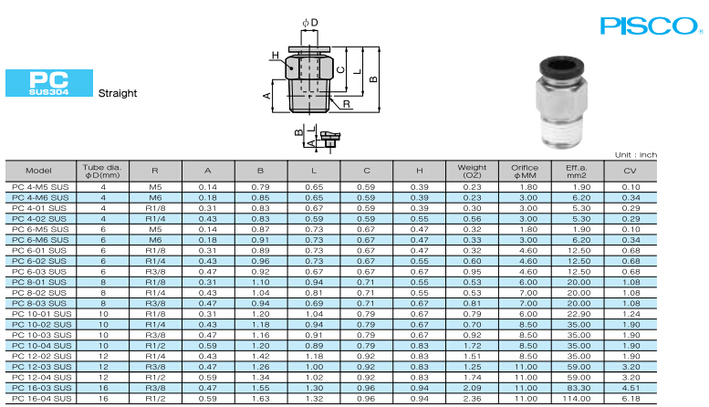 PC4-M5SUS,PC6-M5SUS,PC8-01SUS,PC10-01SUS,PC12-02SUS,PC16-03SUS,PC6-03SUS,PISCO快速接头