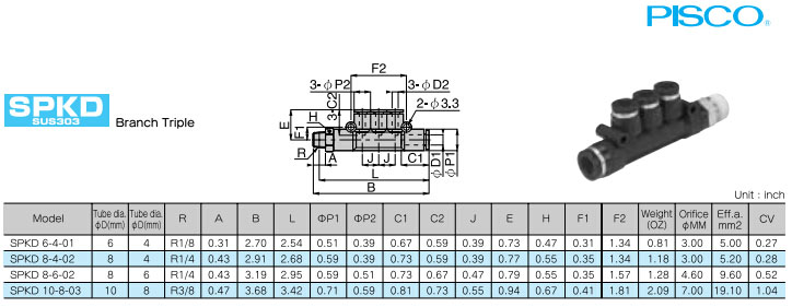 SPKD6-4-01,SPKD8-4-02,SPKD8-6-02,SPKD10-8-03,PISCO快速接头