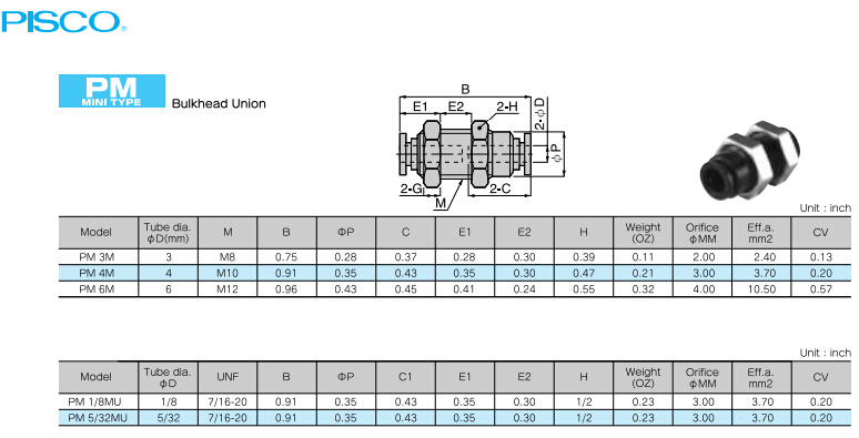 PM3M,PM4M,PM6M,PM1/8MU,PM5/32MU,PISCO快速接头