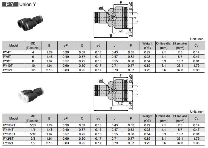 PY4T,PY6T,PY8T,PY10T,PY12T,PY5/32T,PY1/4T,PY5/16T,PY3/8T,PY1/2T,PISCO快速接头
