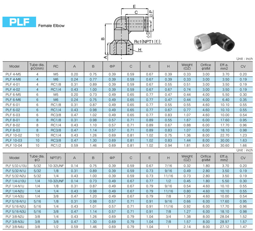 PLF5/32-U10U,PLF1/4-U10U,PLF5/16-N1U,PLF3/8-N2U,PLF5/32-N1U,PLF1/4-N3U