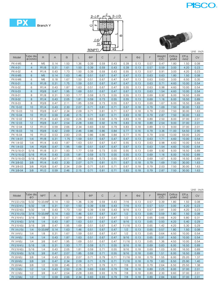 PX5/32-U10U,PX3/16-U10U,PX1/4-U10U,PX5/16-N1U,PX3/8-N2U,PX1/2-N2U,