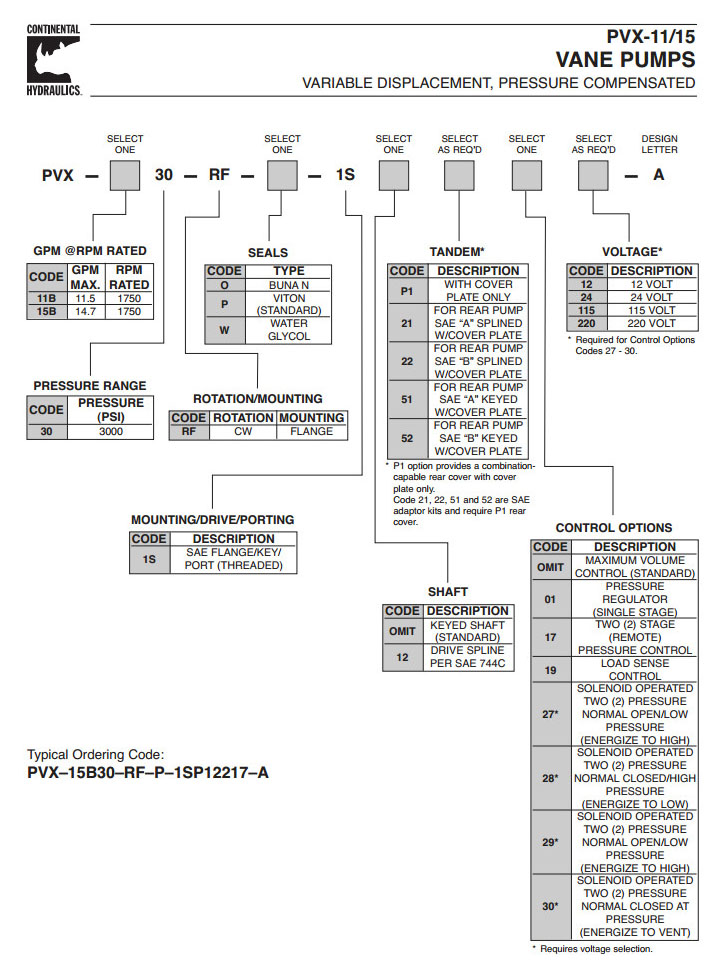 PVX-11B30-RF,PVX-15B30-RF,CONTINENTAL叶片泵