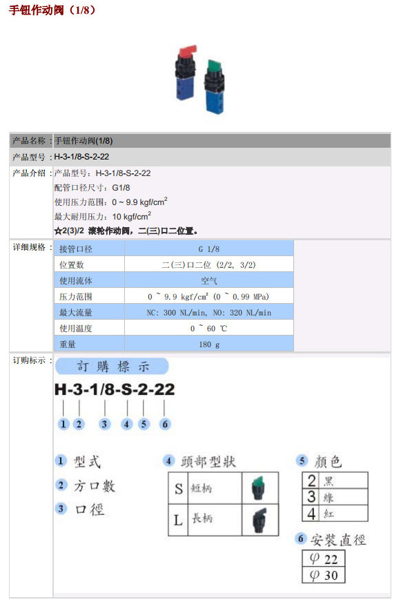H-3-1/8-S-2-22,POSU手钮作动阀