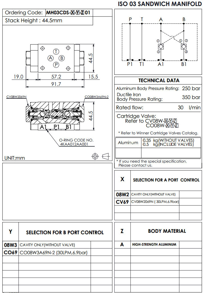 MH03CDS-08W2-08W3-A01,MH03CDS-CV69-CO69-A01,winner积层式油路板