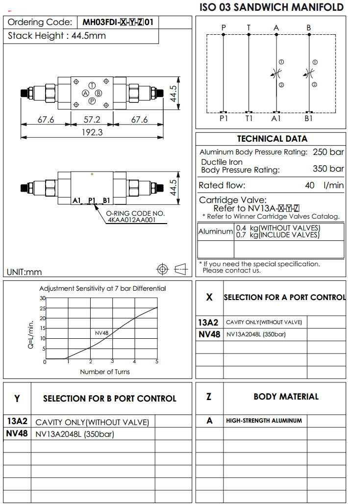 MH03FDI-13A2-13A2-A01,MH03FDI-NV48-NV48-A01,winner积层式油路板