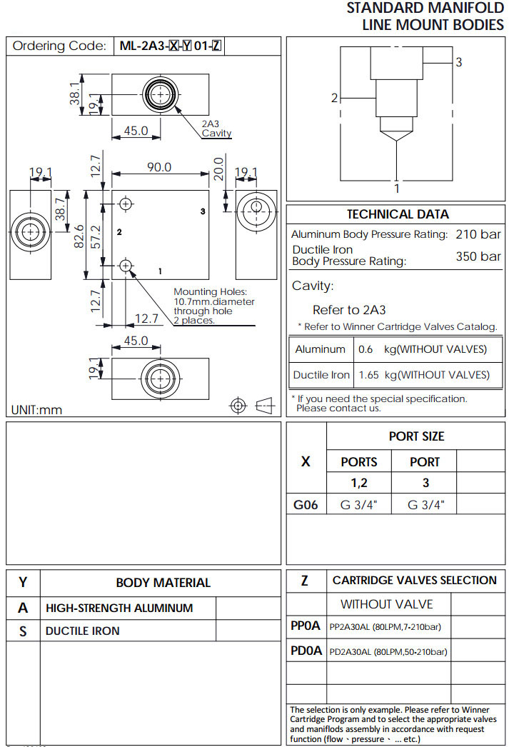 ML-2A3-G06-A01-PP0A,ML-2A3-G06-A01-PD0A,ML-2A3-G06-S01-PP0A,ML-2A3-G06-S01-PD0A,winner标准配管式油路板