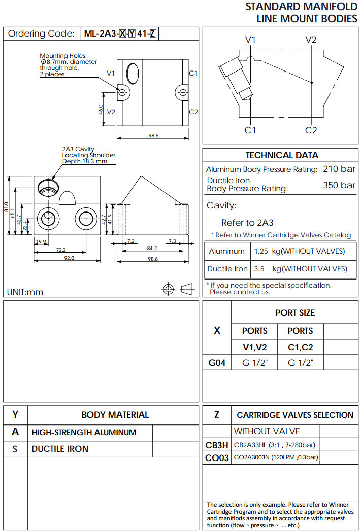 ML-2A3-G04-A41-CB3H,ML-2A3-G04-A41-CO03,ML-2A3-G04-S41-CB3H,ML-2A3-G04-S41-CO03,winner标准配管式油路板