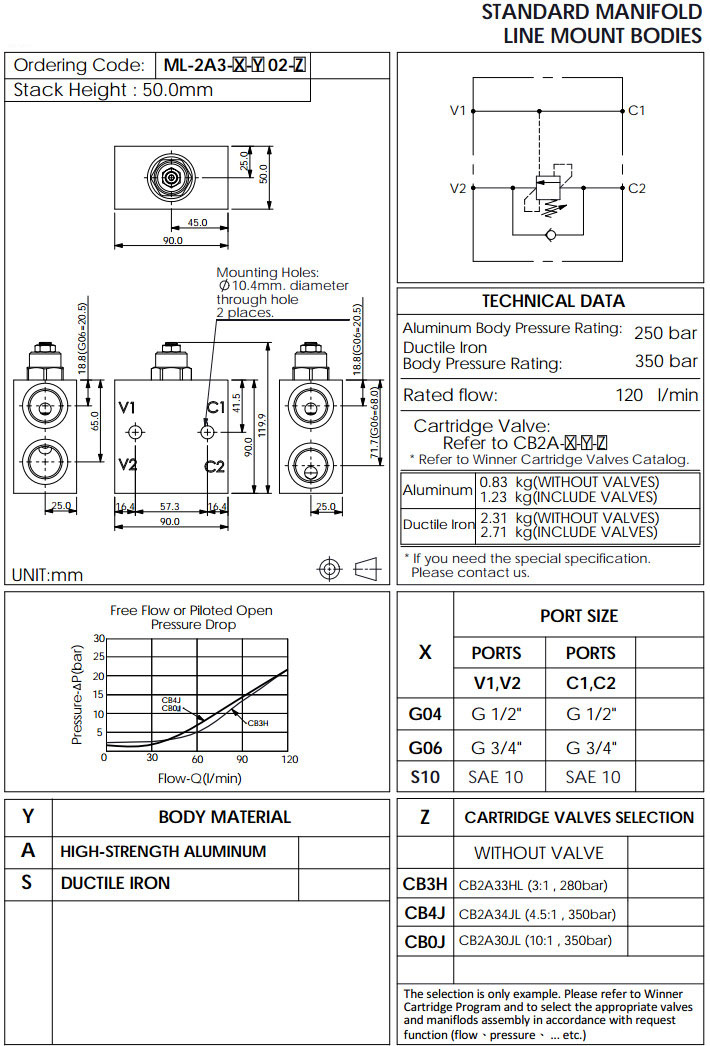 ML-2A3-G04-A02-CB3H,ML-2A3-G06-A02-CB4J,ML-2A3-G10-A02-CB0J,winner标准配管式油路板