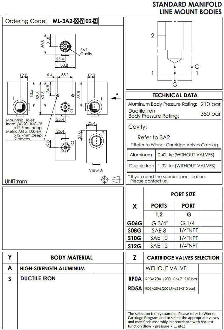 ML-3A2-G06G,ML-3A2-S08G,ML-3A2-S10G,ML-3A2-S12G,winner标准配管式油路板