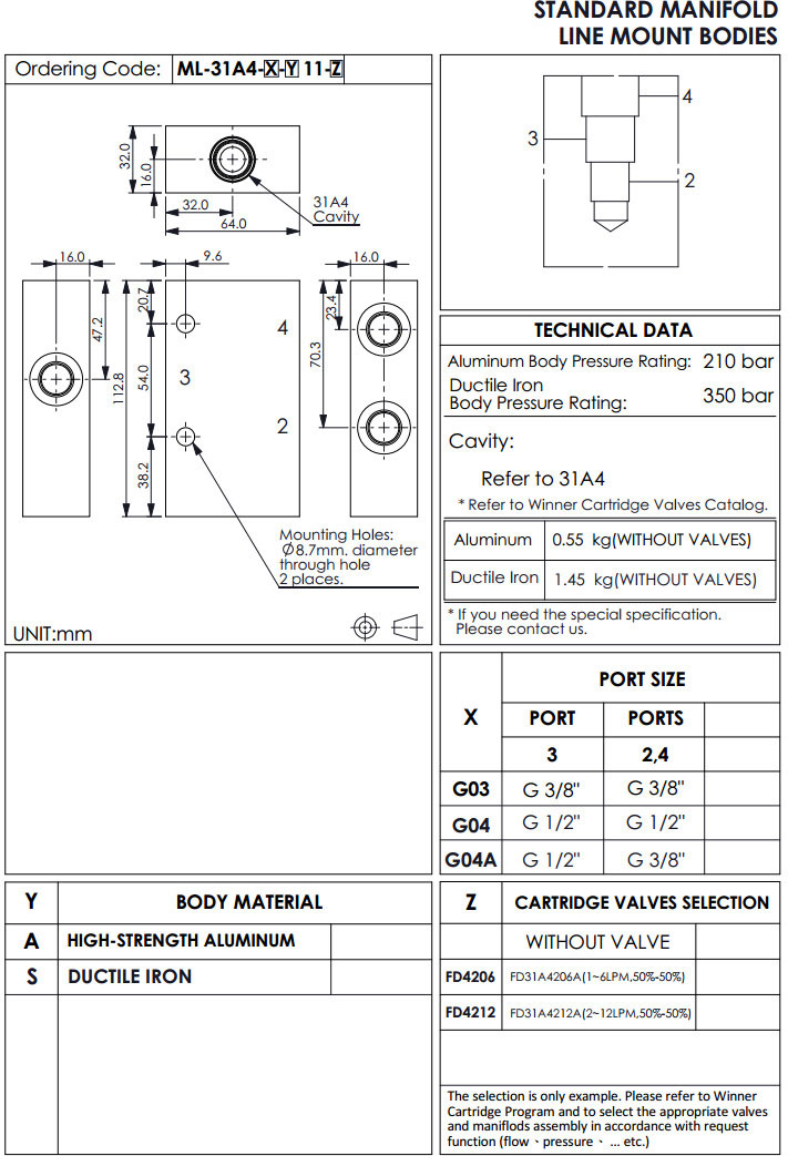 ML-31A4-G03-A11-FD4206,ML-31A4-G04-A11-FD4206,ML-31A4-G04A-A11-FD4206,winner标准配管式油路板