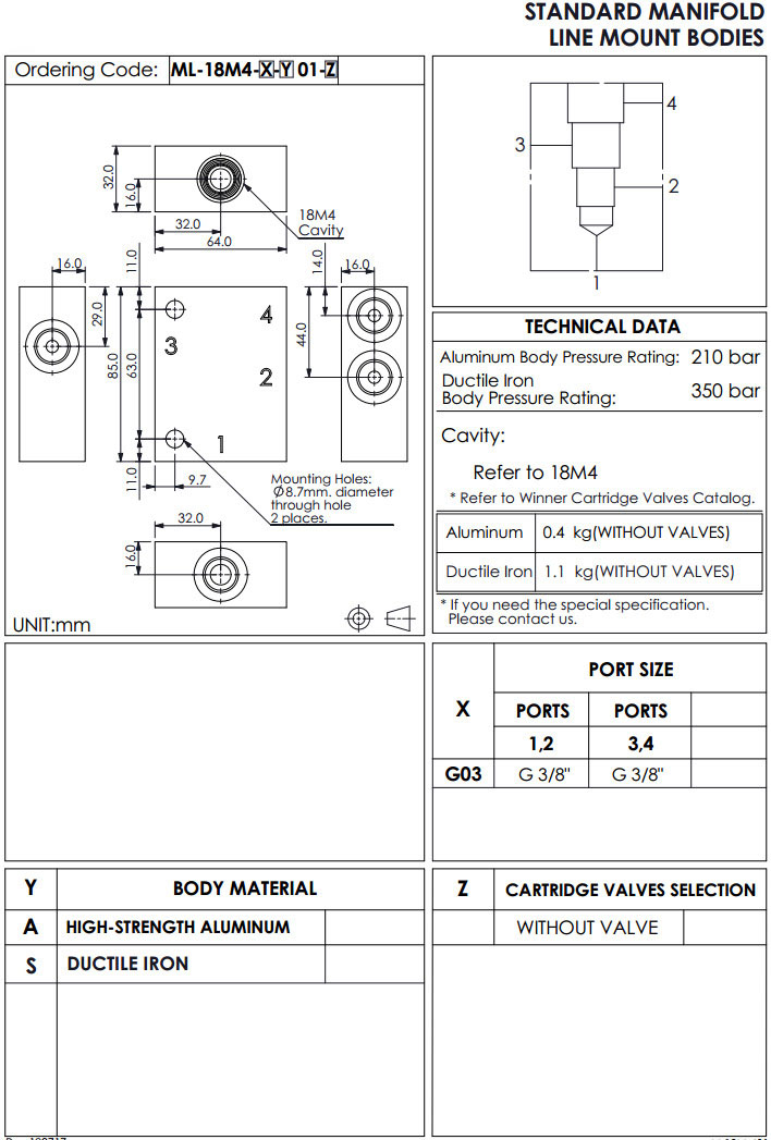 ML-18M4-G03-A01,ML-18M4-G03-S01,winner标准配管式油路板