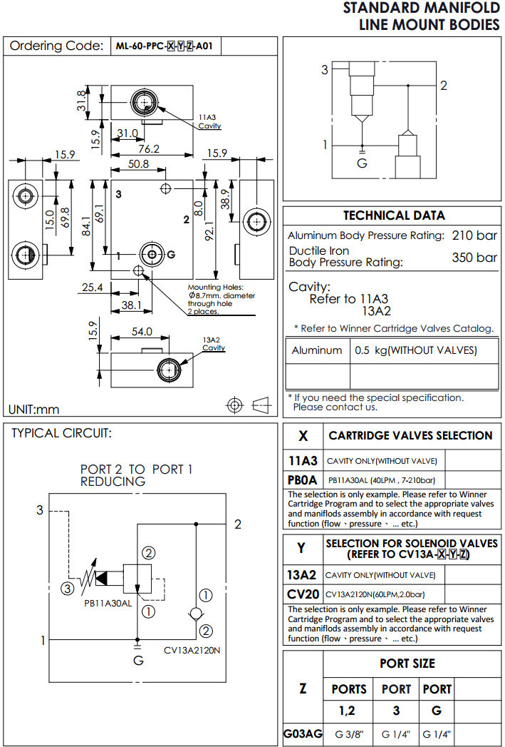 ML-60-PPC-11A3-13A2-G03AG-A01,ML-60-PPC-PB0A-13A2-G03AG-A01,winner标准配管式油路板
