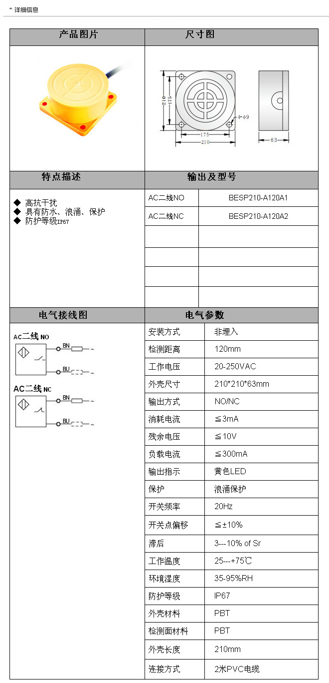 BESP210-A120A1,BESP210-A120A2,SP210交流两线