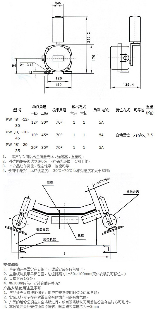 PW(B)-12-30,PW(B)-10-45,PW(B)-20-35,两级跑偏开关
