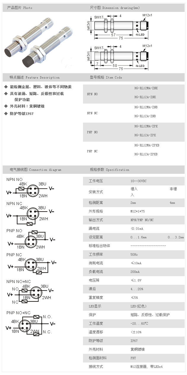 电容式接近传感器 HG-RL12MA-ZNK,HG-RL12A-ZNK,HG-RL12MA-ZNB,HG-RL12A-ZNB,HG-RL12MA-ZPK,HG-RL12A-ZPK,HG-RL12MA-ZPKB,HG-RL12A-ZPKB,