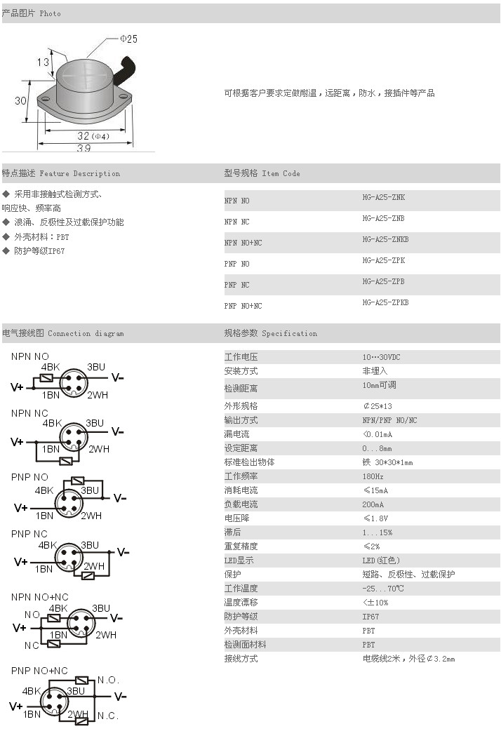 饼型接近传感器 HG-A25-ZNK,HG-A25-ZNB,HG-A25-ZNKB,HG-A25-ZPK,HG-A25-ZPB,HG-A25-ZPKB,