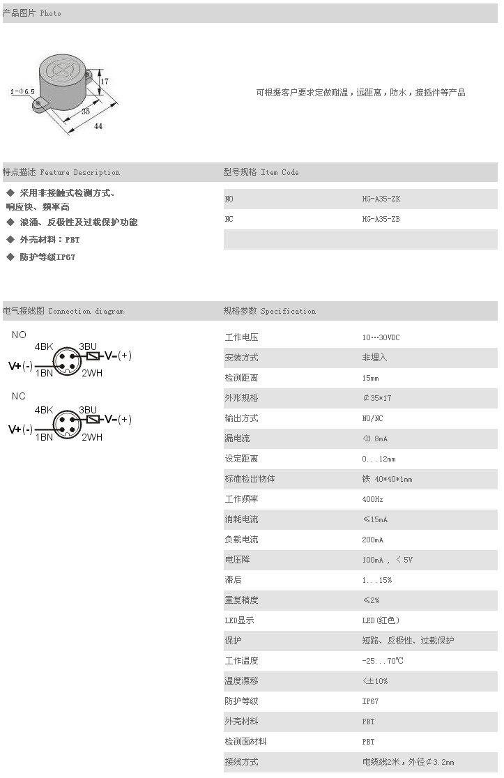 饼型接近传感器 HG-A35-ZK,HG-A35-ZB,
