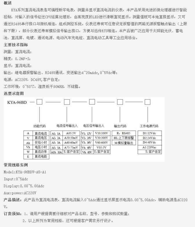 KYA-96BDA-A1,KYA-96BDA-A2,KYA-96BDA-A3,KYA-96BDA-A5,KYA-96BDA-A10,KYA,直流电流表