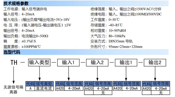 TH-A-A420-A420,TH-A-2A420-2A420,TH无源信号隔离器