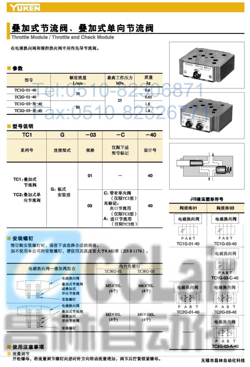 TC1G-01-40,TC1G-03-C-40,TC1G-03-A-40,叠加式单向节流阀,榆次油研叠加式单向节流阀,YUKEN叠加式单向节流阀