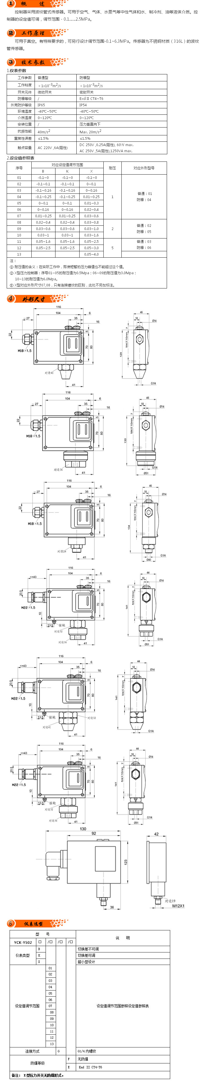YCK-Y502B,YCK-Y502K,YCK-Y502X,YCK-Y502,通用型压力控制器