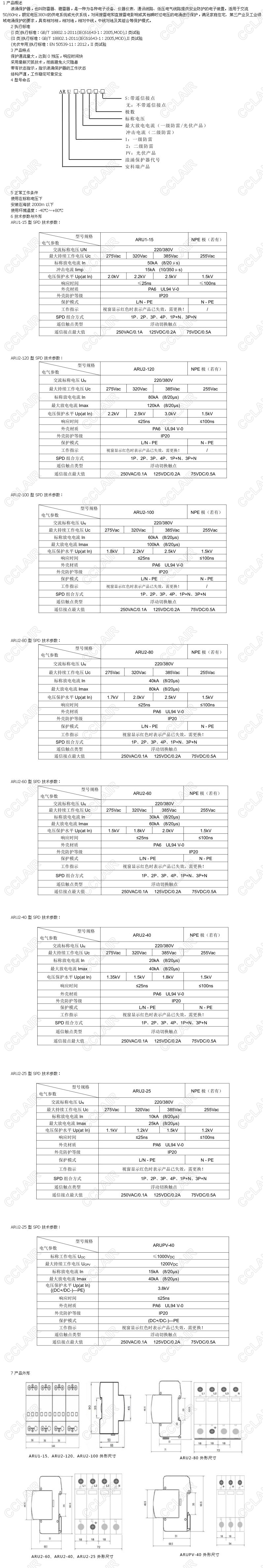 ARU1-15,ARU2-120,ARU2-100,ARU2-80,ARU2-60,ARU2-40,ARU2-25,ARUPV-40,ARU,浪涌保护器