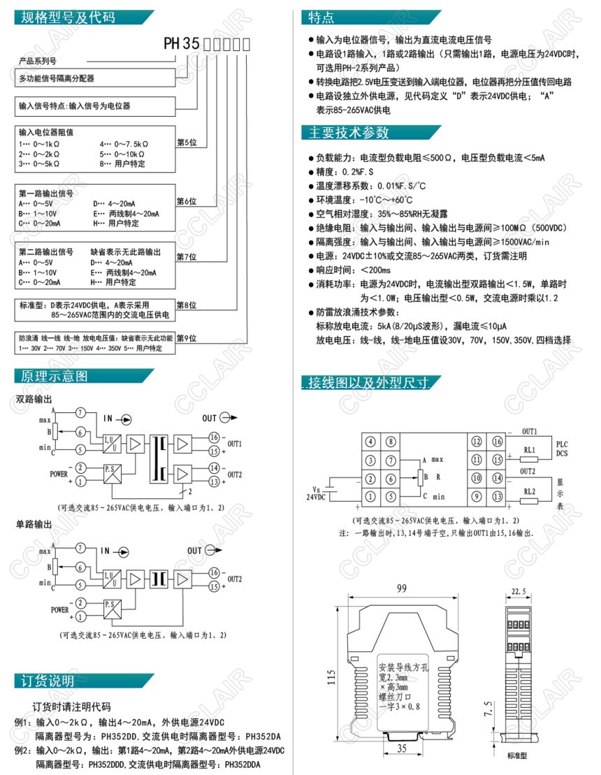 PH-351A,PH-352B,PH-353C,PH-352DD,PH-352DA,PH-352DDD,PH-352DDA,PH-35,电位器型信号隔离器