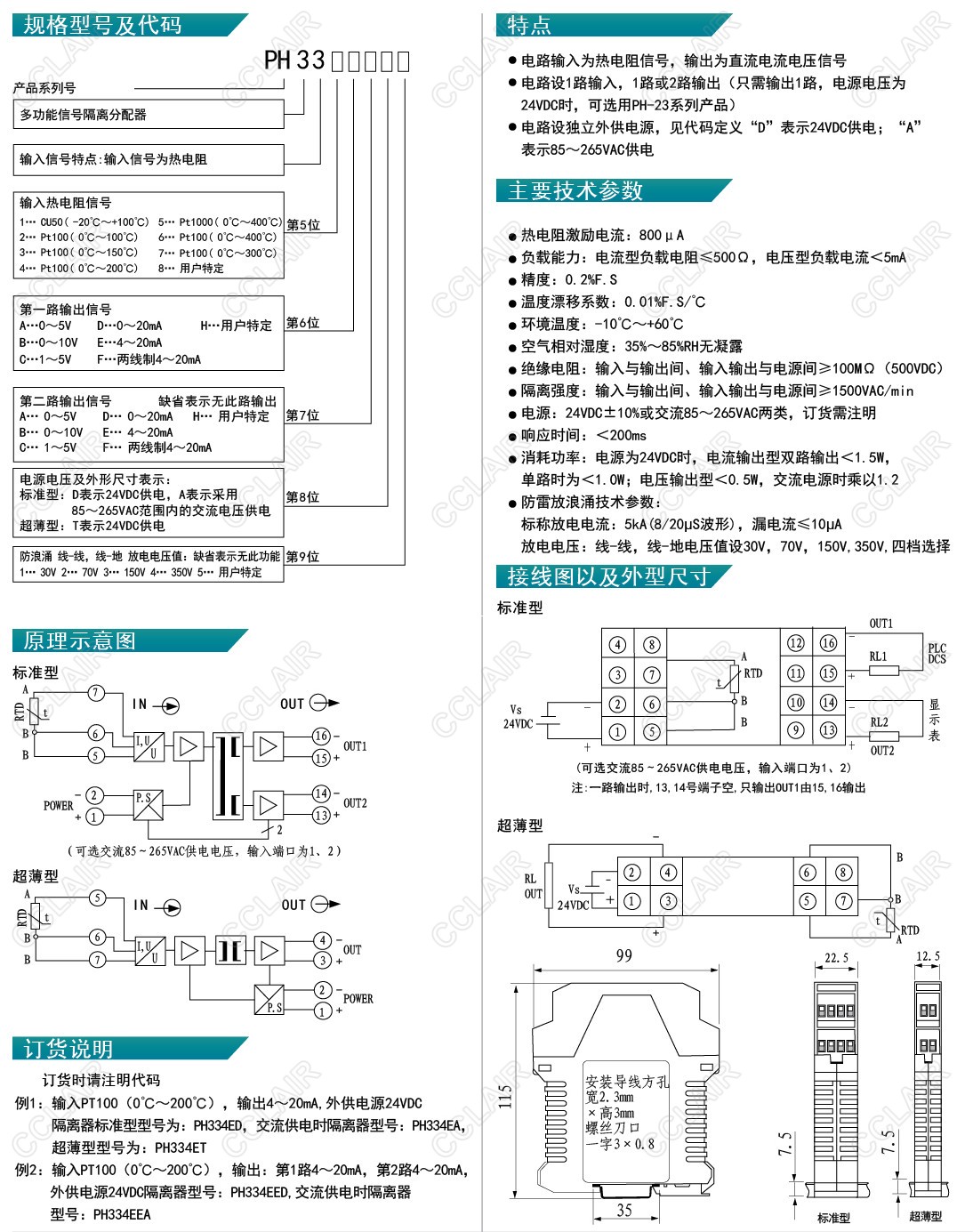 PH334ED,PH-334ED,PH-334EA,PH-334ET,PH-334EED,PH-334EEA,PH-33,热电阻型信号隔离器
