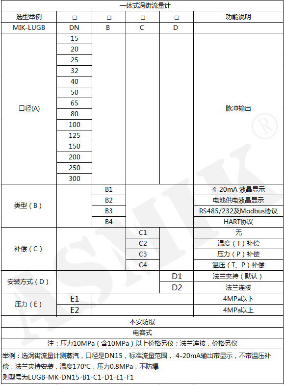 LUGB-MK-DN15-B1-C1-D1-E1-F1,MIK-LUGB涡街流量计MIK-LUGB-DN25,MIK-LUGB-DN40,MIK-LUGB-DN50,MIK-LUGB-DN265,MIK-LUGB-DN80,MIK-LUGB-DN100,MIK-LUGB-DN125,MIK-LUGB-DN150,MIK-LUGB-DN200,MIK-LUGB-DN250,MIK-LUGB-DN300,