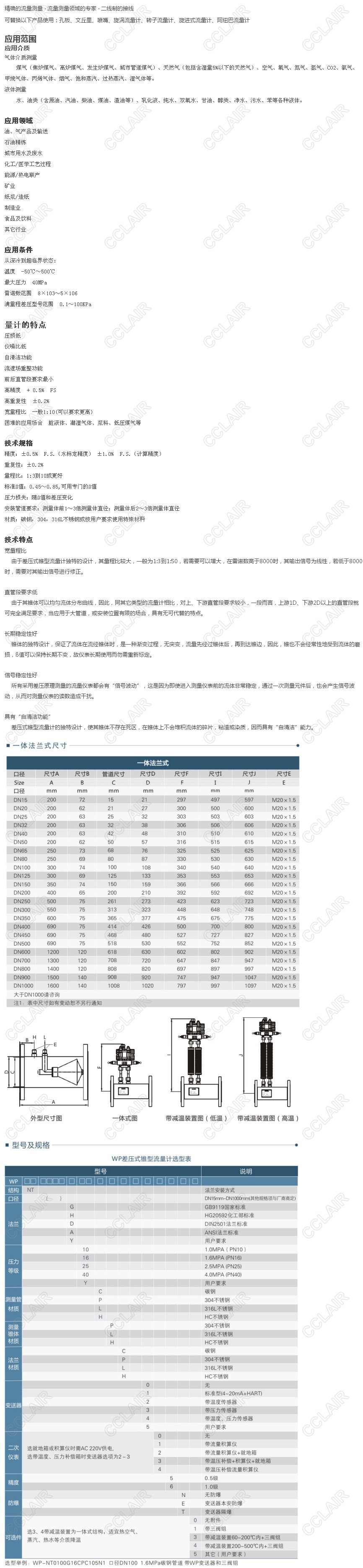 WP-NT0100G16CPC105N1,差压式锥型流量计