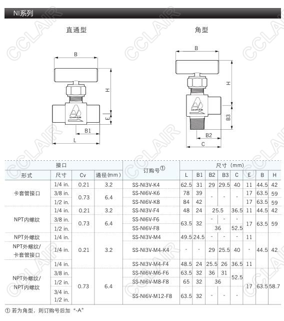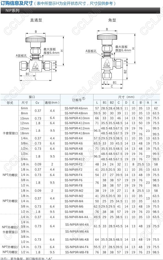 SS-NIP2R-M4-K6-A-SH-P,SS-NI3V-F4-K6-A-SH-P,NIP和NI帽式针阀—不锈钢管阀件