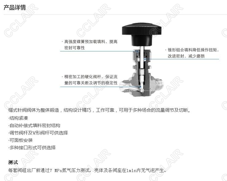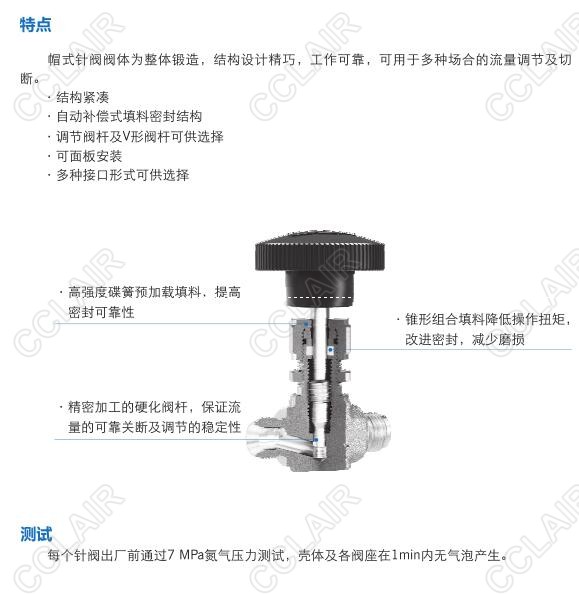 帽式针阀阀体为整体锻造,结构设计精巧,工作可靠,可用于多种场合的流量调节及切断。