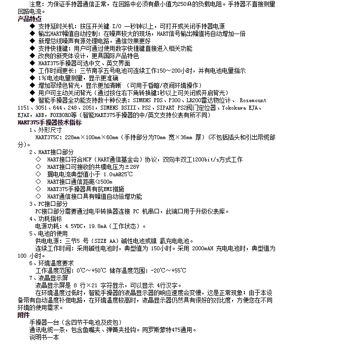 HART375C,手持器