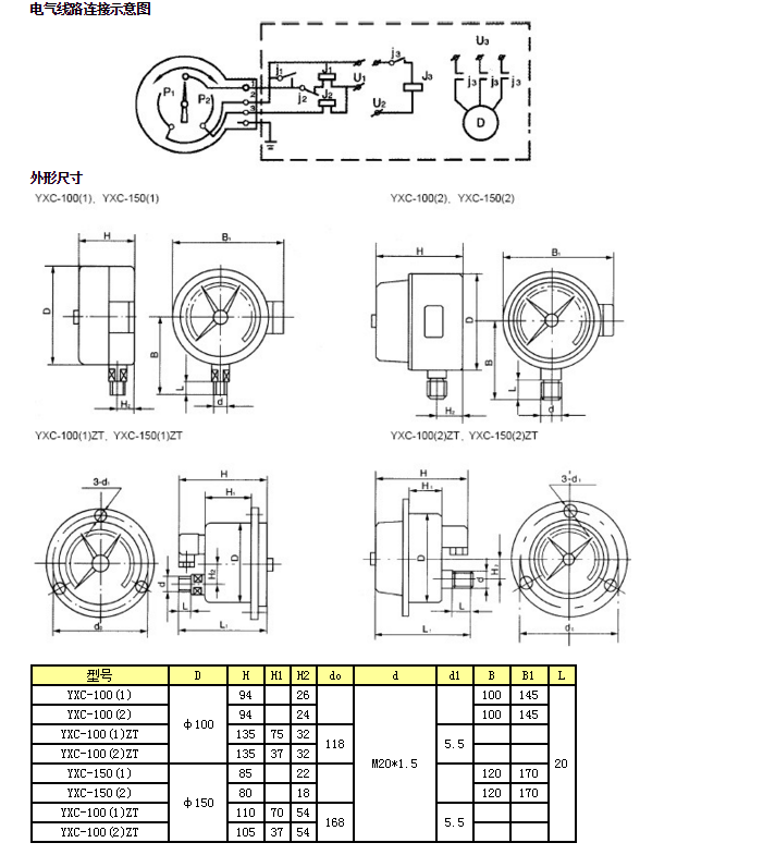 YXC-150(2),YXC-100(1)ZT,YXC-100(2)ZT,磁助电接点压力表
