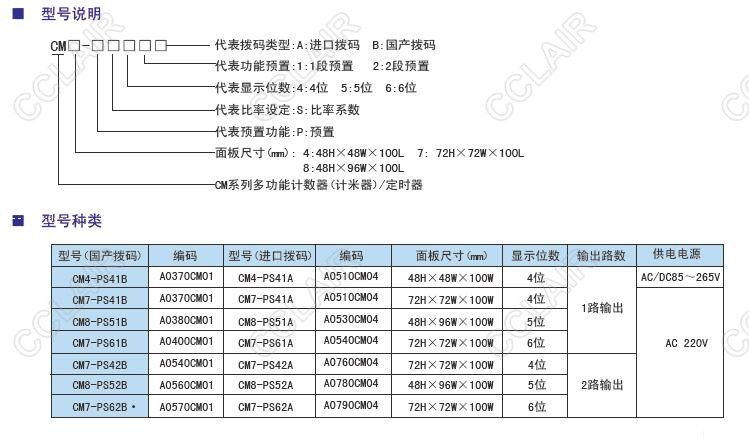CM4-PS41B,CM7-PS41B,CM8-PS51B,CM7-PS61B,CM7-PS42B,CM8-PS52B,CM7-PS62B,CM多功能计数器/计米器/定时器