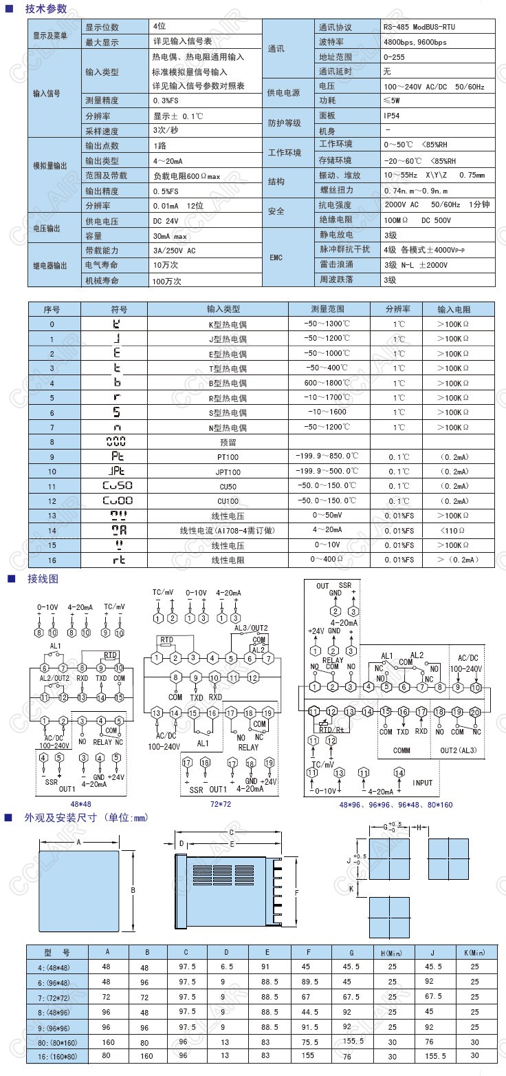 AI708-4-SC10,AI708-4-RC10,AI708-4-KC10,AI708-4-DC10,AI708人工智能调节仪