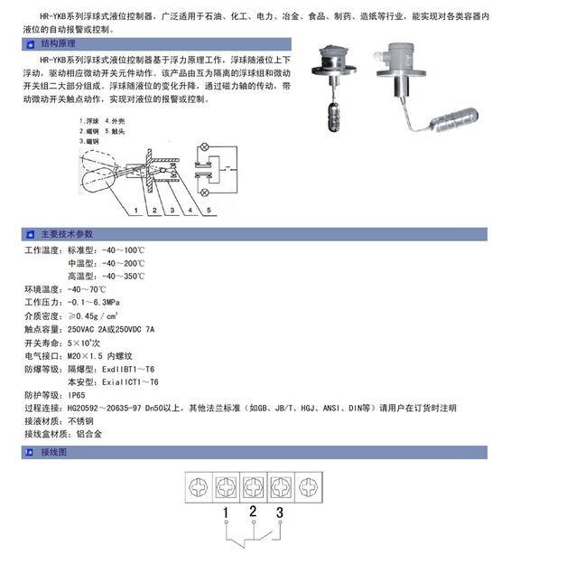 HR-YKB系列浮球式液位控制器,广泛适用于石油、化工、电力、冶金、食品、制药、造纸等行业,能实现对各类容器内液位的自动报警或控制。