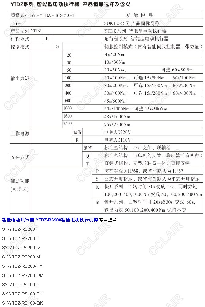 SY-YTDZ-RS200,SY-YTDZ-RS200-T,SY-YTDZ-RS200-Q,YTDZ-RS200智能电动执行机构