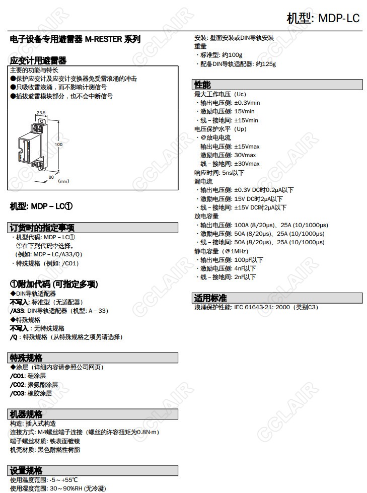 MDP-LC,MDP-LC/33,MDP-LC/Q,应变计用 插入型避雷器