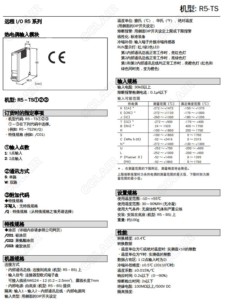 R5-TS/R5T-TS,R5-TS2W/Q,R5-TS1S,R5-TS1W,R5-TS2S,R5-TS2W热电偶信号输入